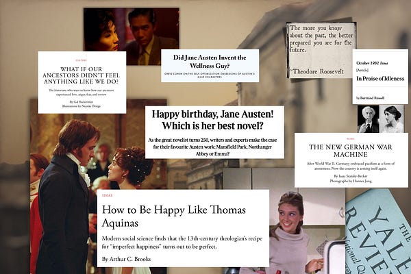 (dec 8 - 14) — essential essays, op-eds, articles • aquinas's happiness; austen's wellness men; emotional evolution; unconscious group dynamic; german…